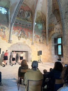 Mercredi 29 octobre de 10 h à 12 h un cours de danse à la salle des fêtes a été proposé par la Compagnie Arkhé et de 14 h à 16 h une visite guidée gratuite suivie d’un spectacle de danse s’est joué dans la salle des fresques du château de Saint-Floret. Il s’agit du spectacle Meta, petite forme de la compagnie Arkhé de Clt-Fd, deux danseuses et une musicienne. Les participants ont pu faire une ronde à la fin du spectacle.